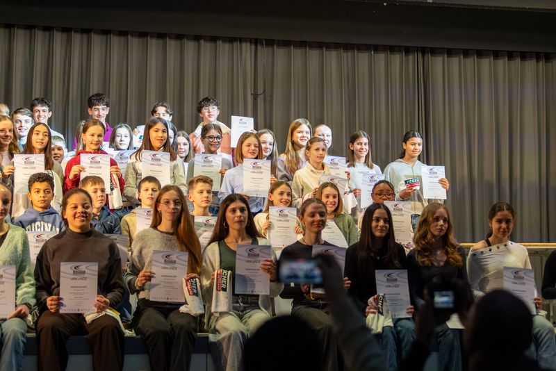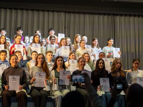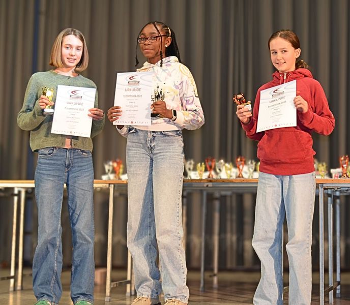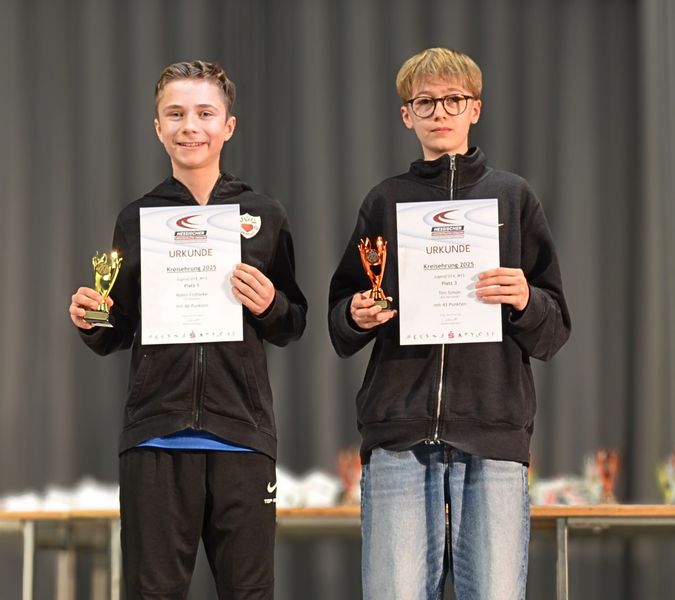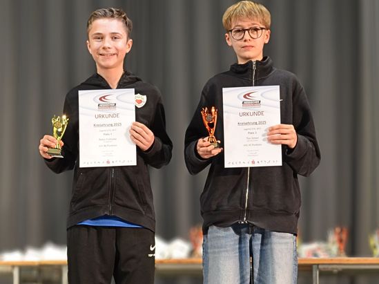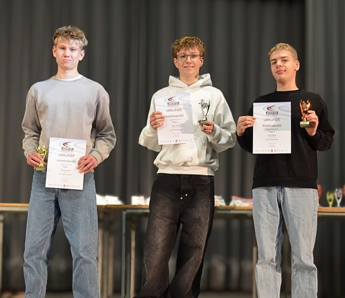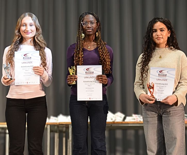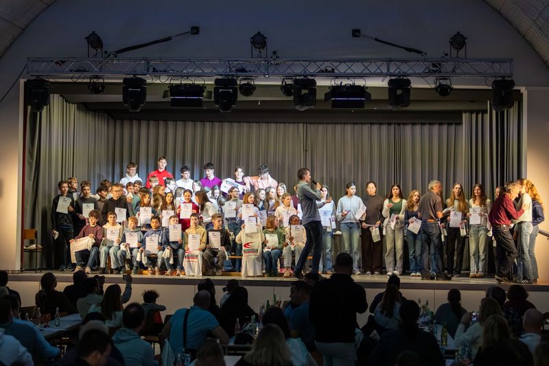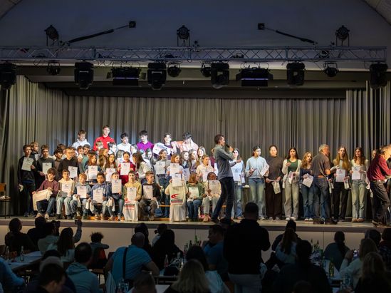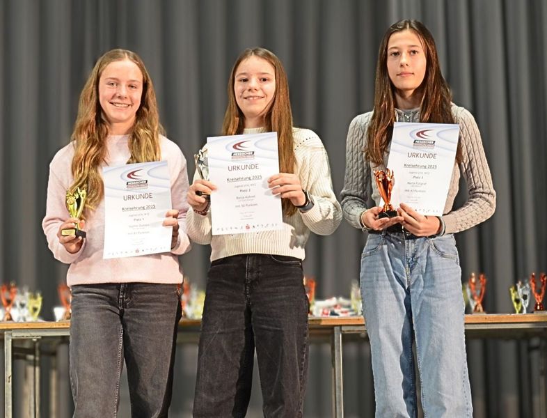 Highlight war die Ehrung für den dritten Sieg in Folge beim Kreisevergleichswettkampf 2025, bei dem Athletinnen und Athleten aus drei Altersklassen (U12-U16) versuchten, auf der Bühne Platz zu finden – mit Erfolg, wie das Gruppenbild beweist.