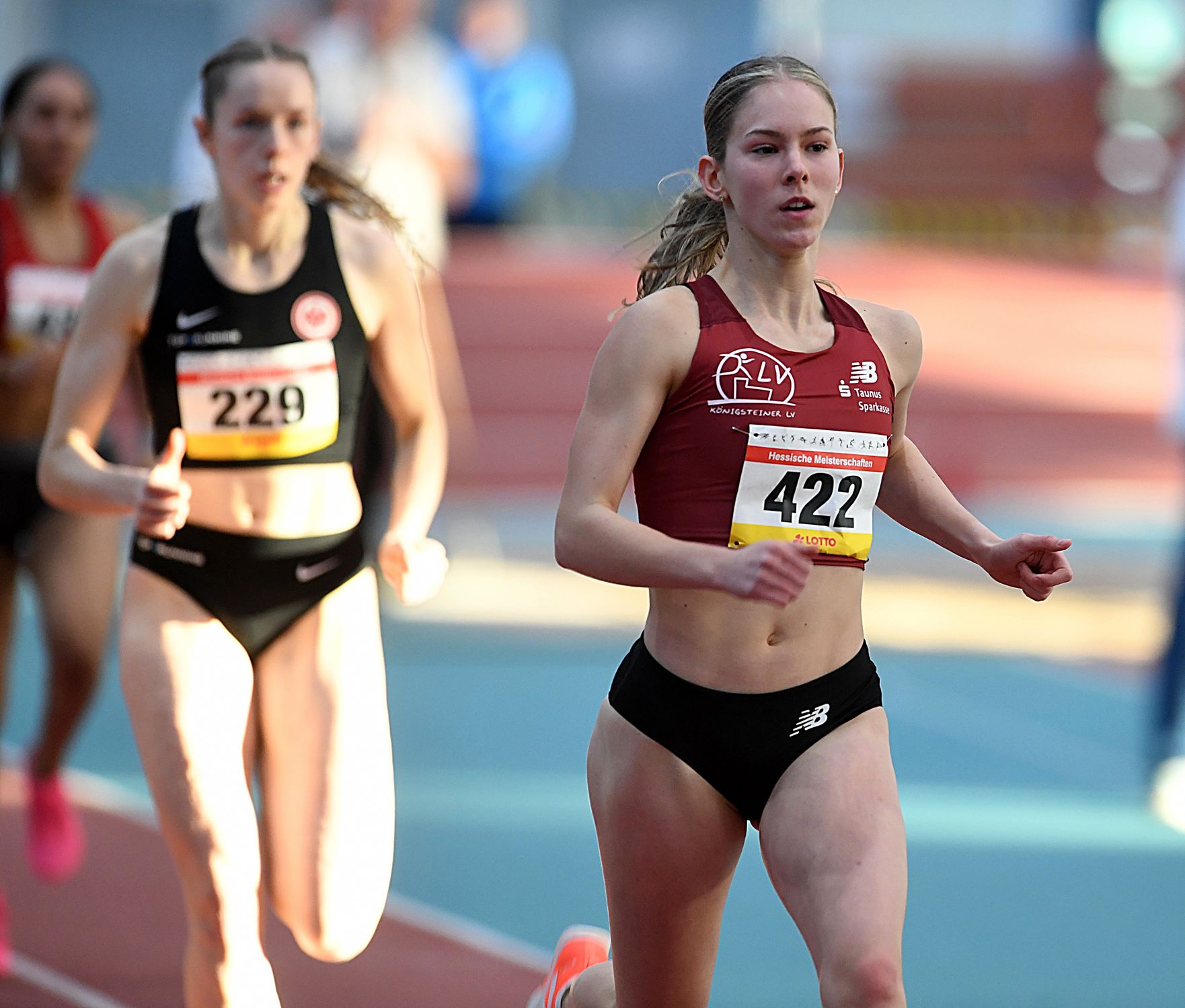 Sarah Köcher (KLV/noch U20) finishte im B-Lauf mit 4:31,49 Minuten knapp vor Emma Graf (auch KLV/4:31,66 min.). Für Svea Regina (TVW/U23) und Hannah Lösel (Eint. Ffm./U20) zeigte die Stoppuhr 4:42,53 bzw. 4:55,95 min. an.