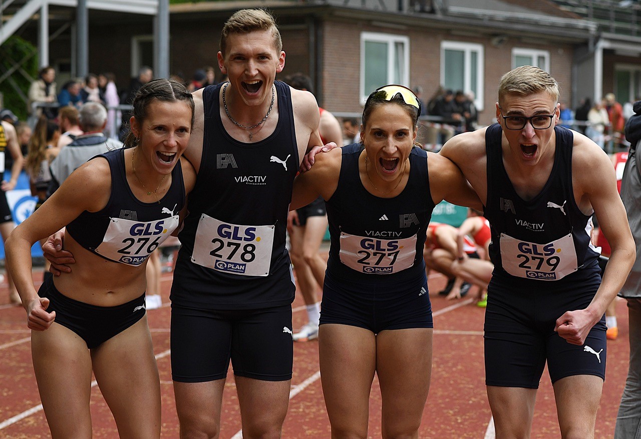 Allen voran das 4x400m Mixed Quartett von Frankfurt Athletics. Mit einem Vorsprung von fast vier Sekunden und einer starken Zeit von 3:24,57min. siegte das Team rund um Startläufer Sven Müller in einem großen Feld von 18 Staffeln. Teil des siegreichen Teams waren neben Sven Müller noch Finn Kohlenbach und die 400m-Hürden Spezialistinnen Elena Kelety und Sabrina Heil.