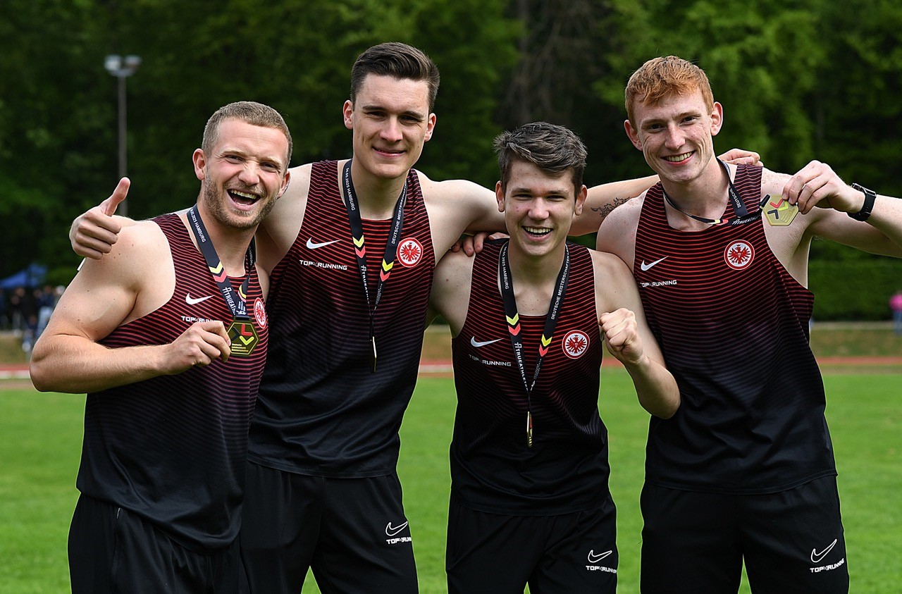Ebenfalls Gold mit nach Hessen brachte das 4x400m Männer-Quartett von Eintracht Frankfurt. Philip Hennemuth, Kai Rechinger, Jannik Elias Gutmann und Alexander Schön brachten den Stab hauchdünn vor dem Team der LG Nord Berlin als Zweiter über die Ziellinie. Durch eine Disqualifikation der Erstplatzierten, rückten die vier Sprinter nach. Die Zielzeit: 3:22,43min.