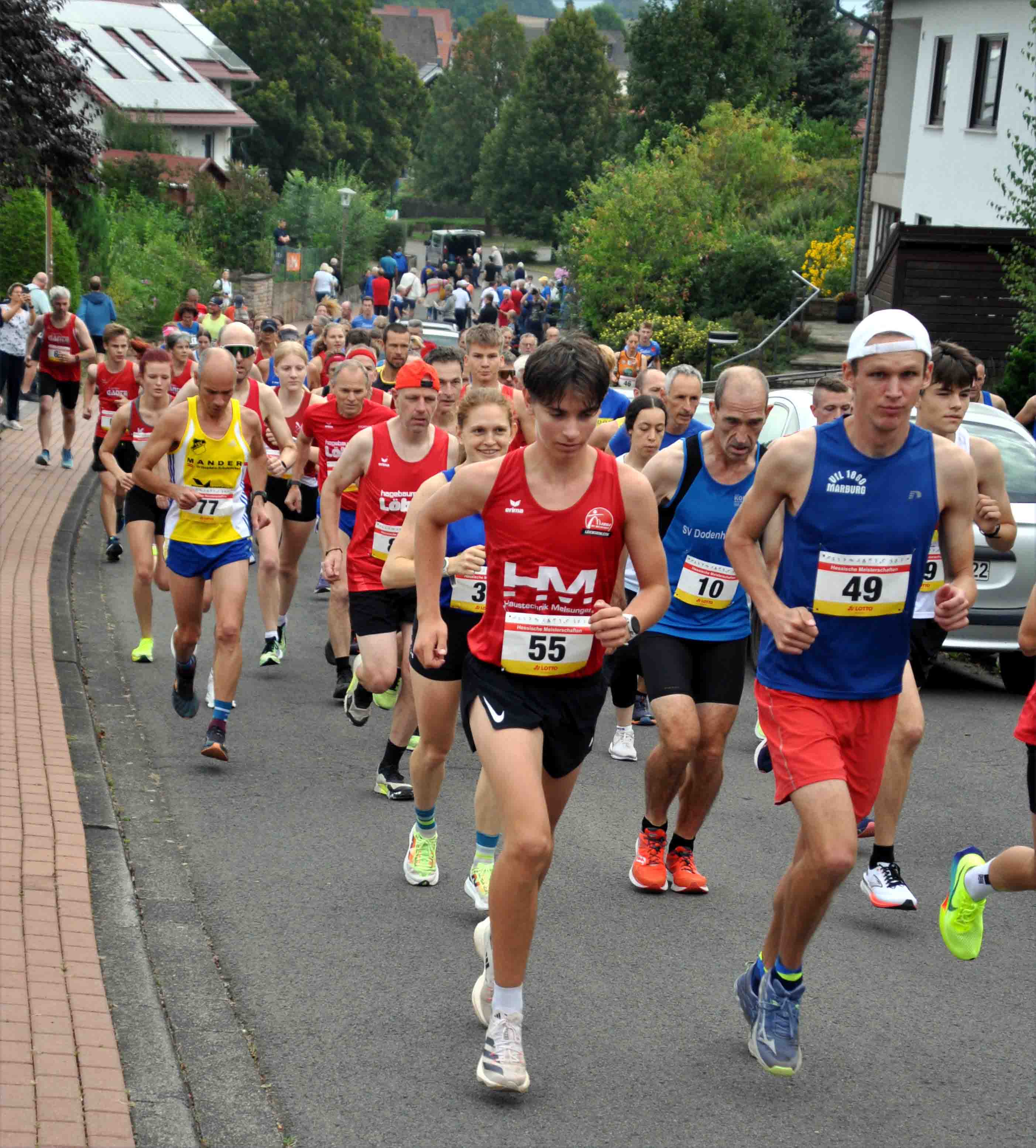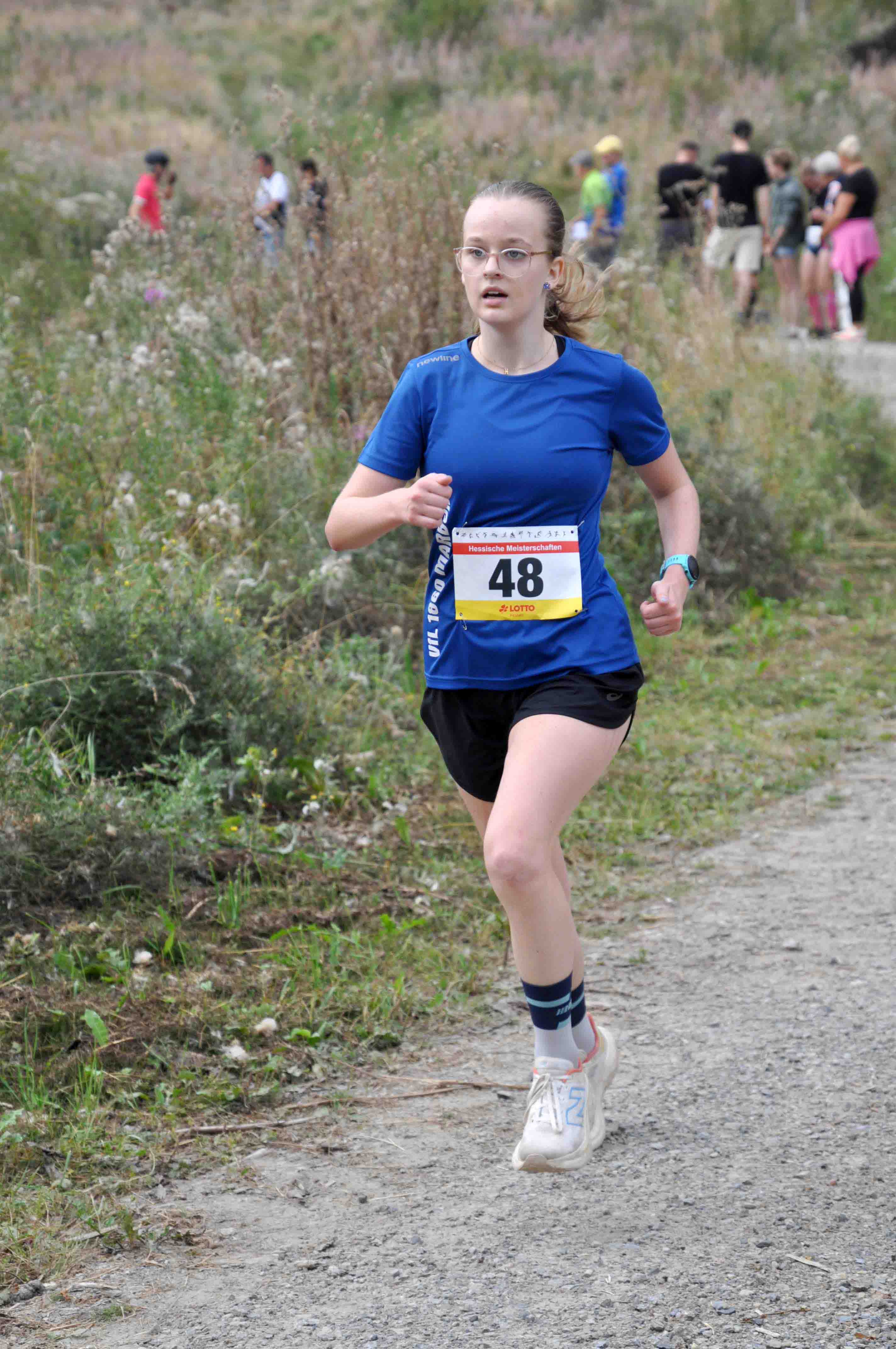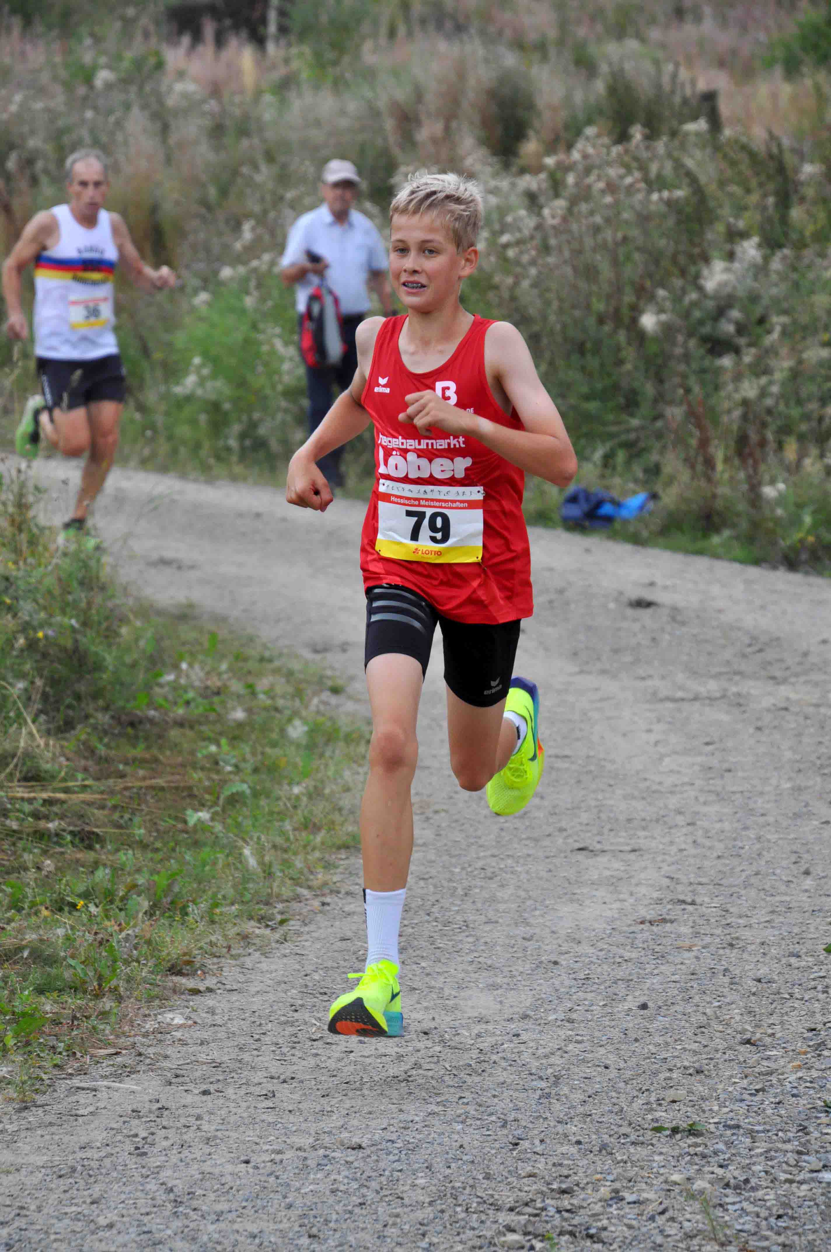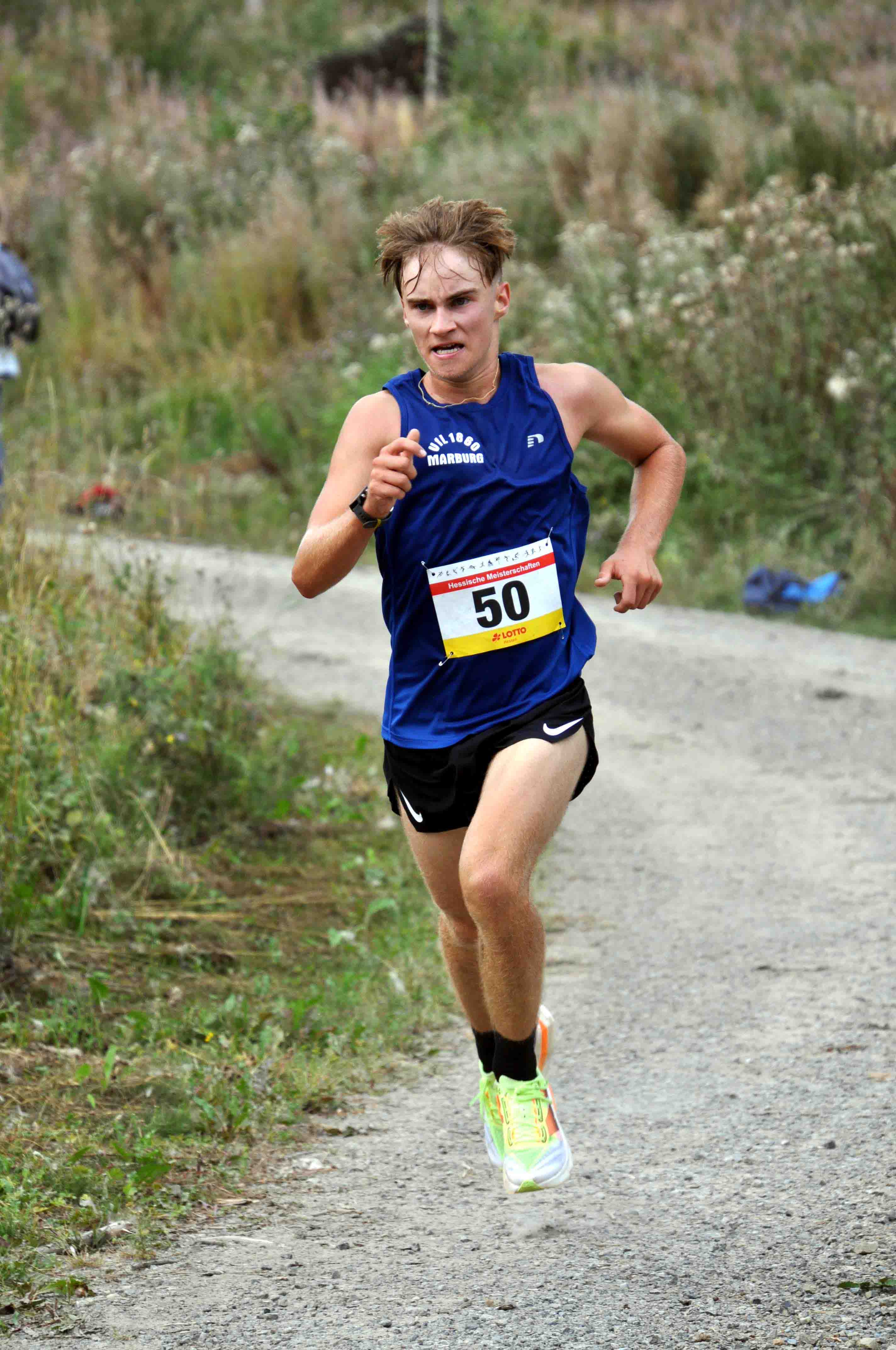 Durch Charlotte Weigand, W U20, kam der ASC zu einem weiteren Titel. Zweite wurde hier Marika Hack vom TSV Niederelsungen. In der W U18 ging der Titel an Teresa Dinges vom VfL1860 Marburg, die sich mit 80 sec. Vorsprung erfolgreich gegen die drei dann folgenden Läuferinnen des LC Marathon Rothenburg, Johanna Weber, Emily Harms und Marina Gnauert, durchsetzte. Letztere erhielten aber dann ihre Goldmedaille für ihren Mannschaftserfolg. Quasi Teresa vorgemacht hat es Laurenz Christian Steiß mit seinem Sieg in der M U18 in 43;18 min. Nur sechs Sekunden Rückstand hatte Tom Knauer vom SSC. Mit fast drei Minuten Abstand folgte der Drittplatzierte Yann-Hendrik Hopp in den Farben von Eintracht Frankfurt. Als einziger Repräsentant der TG Camberg vertrat Johann Escher als Sieger der M U20 seinen Verein in 43:16 min. würdig. Max Kleinschmidt, TSV Niederelsungen, kam als Zweiter ebenfalls auf fast drei Minuten Rückstand. Noch größer war die Zeitdifferenz des Drittplatzierten Lars Gerbig, LG Rüsselsheim, auch wenn sein Trainer spontan reagierte mit: "Dritter Platz - die Fahrt hat sich gelohnt!"