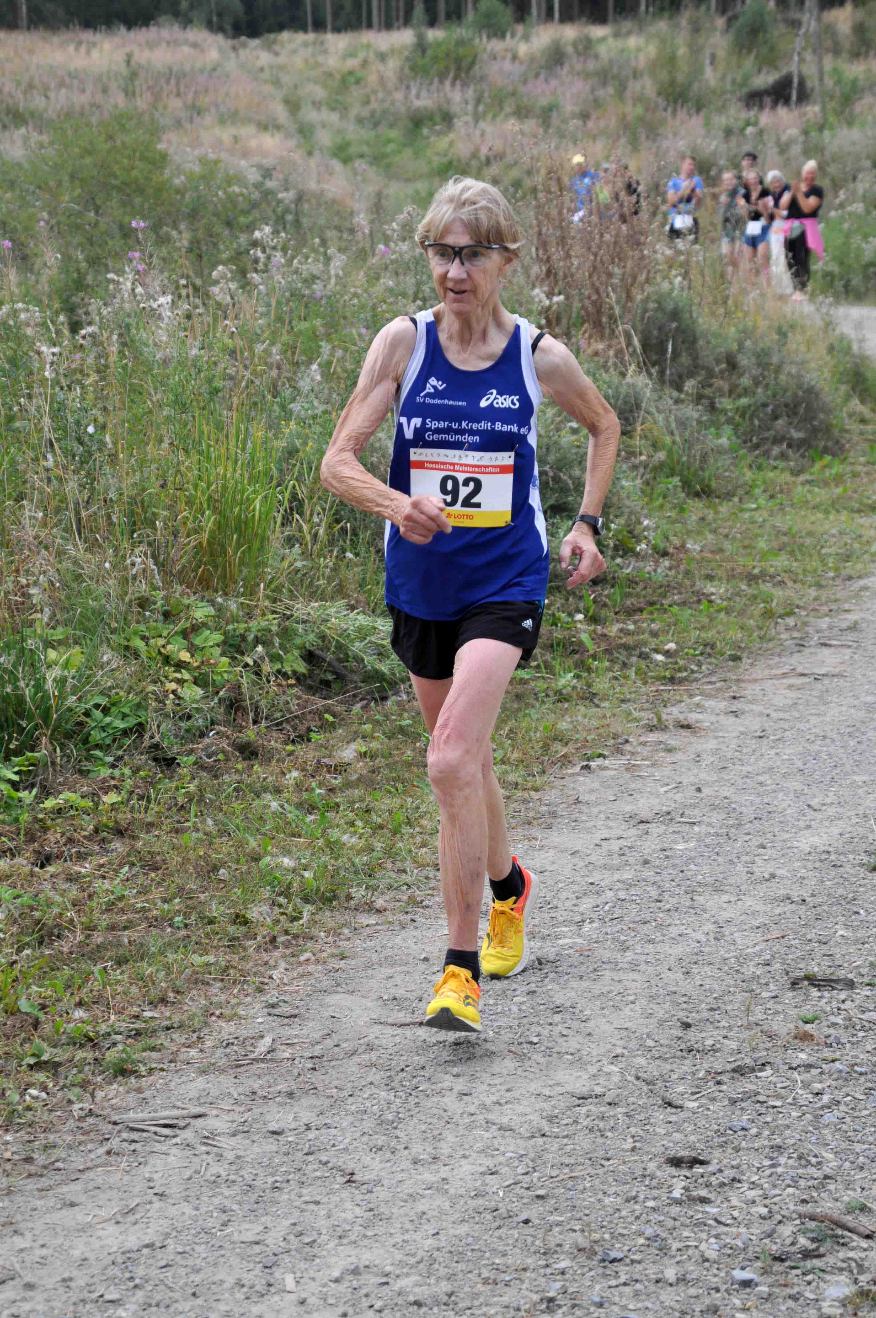 In den Altersklassen waren die W30 gar nicht und die W35, W40, W45, W60, W65 und W70 nur einfach besetzt. Das führte dazu, dass die Bedeutung der Medaillenstandards durch den die Siegerehrung moderierenden Hess. Laufwart kurz erklärt wurde. (Der Sinn der Medaillenstandards wurde am Schluss der Veranstaltung von einem Läufer kritisch angemerkt.) In der W45 und der W65 gab es nämlich für die Siegerinnen Daniela Ludwig-Crede, SV Blau-Weiß Dodenhausen, und Cornelia Wagener, LC Diabü Eschenburg, eine Goldmedaille, in den anderen Altersklassen nicht. So blieben für Lena Reeg, SCM, Alexandra Benthe, TSV Niederelsungen, Ilona Hildmann, TV Hess. Lichtenau, und Marianne Domes, SV BW Dodenhausen, nur Urkunden als Auszeichnung. Wie bereits erwähnt heißt die Titelträgerin der W50 Susanne Heinbach, LG Wettenberg, mit einer starken Leistung von 50:31 min. Nicole Ramus, TSV 1889 Geismar, wurde Zweite mit fast zehn Minuten Rückstand vor Melanie Knauf auf Platz 3 und Alicia Torres Minoves, beide TSV Niederelsungen. Knapp unter einer Stunde blieb die Siegerin der W55, die Niederelsungerin Martina Stück. Silke Altmann vom Laufteam Rotenburg und Sabine Bergmann vom Laufteam Kassel folgten jeweils in respektvollem Abstand auf den Plätzen 2 und 3.